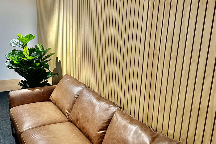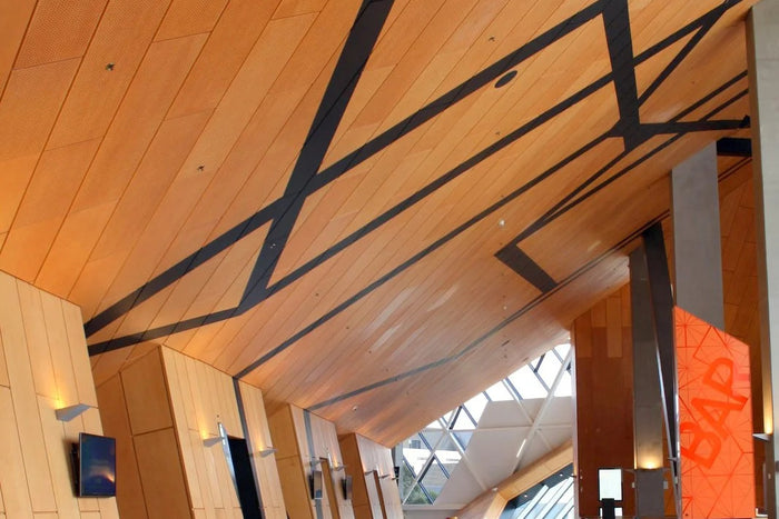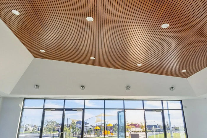 Austral Slatpanel is a Hoop Pine plywood panel system designed for interior walls and ceilings. Austral Slatpanel is a full 2400 x 1200mm one-piece plywood panel, making it the easiest, fastest and most cost effective way to achieve an amazing timber slat ceiling or wall.