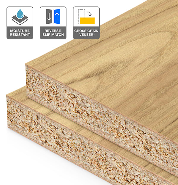 American Oak Veneer Crown Cut Reverse Slip Match Cross Grain on HMR Moisture Resistant Particleboard