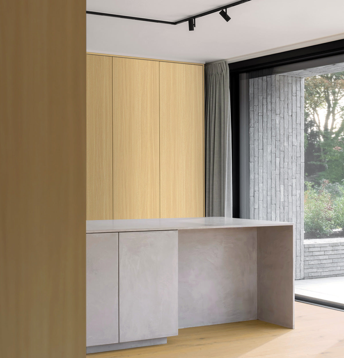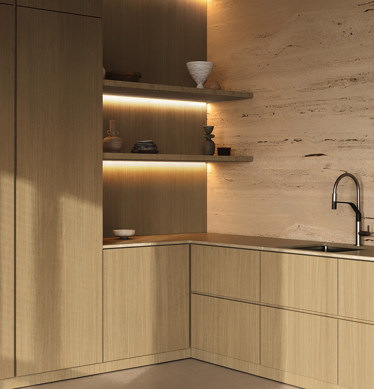 Australian Eucalypt EVOGRAIN Hyperreal showcases a light blonde palette with subtle pink and peach undertones, capturing the timeless beauty of Tasmanian Oak and Plantation Oak Quarter Cut Veneer. Created with innovative 3D surface technology, this premium architectural surface with a Moisture Resistant MDF core delivers the authentic depth, warmth and texture of natural timber veneer.