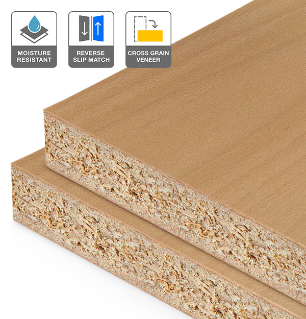 Beech Veneer Crown Cut Reverse Slip Match Cross Grain on HMR Moisture Resistant Particleboard