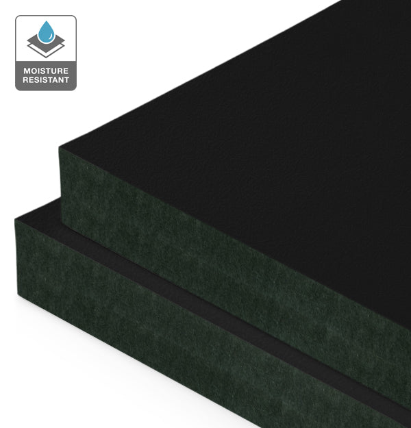 Our black liner laminate MDF panels feature a melamine paper finish - a resin-impregnated decorative paper applied both sides (G2S). This thin, smooth finish combines with a durable black moisture resistant MDF core to offer a perfect blend of cost-effectiveness and practicality, providing a consistent look at an affordable price.