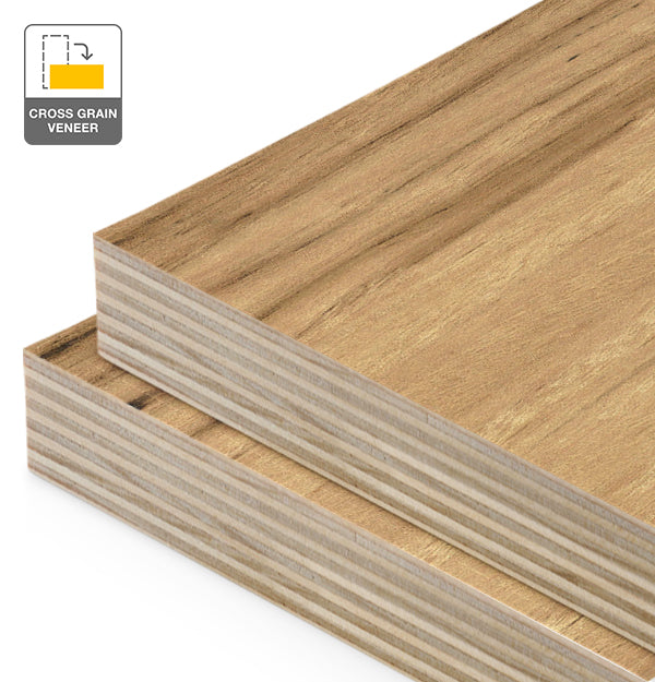 Grain Orientation: Cross Grain - Veneer is applied with the grain running horizontally across the width of the sheet. This configuration is ideal for drawer fronts, overhead cabinetry, and short-span applications.