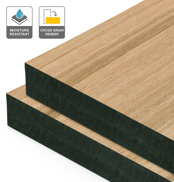 Grain Orientation: Cross Grain - Veneer is applied with the grain running horizontally across the width of the sheet. This configuration is ideal for drawer fronts, overhead cabinetry, and short-span applications.