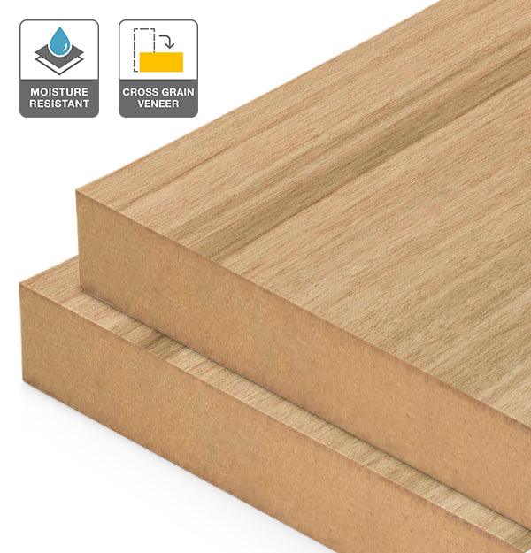 Grain Orientation: Cross Grain - Veneer is applied with the grain running horizontally across the width of the sheet. This configuration is ideal for drawer fronts, overhead cabinetry, and short-span applications.