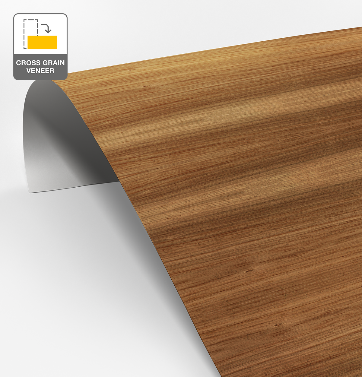 Curve radius: Laminate backed veneer is suitable for gentle curves only. A minimum bending radius of 600mm is recommended. Attempting tighter bends may cause cracking or surface damage and should only be undertaken with specialised equipment and thorough testing at the purchaser’s risk.