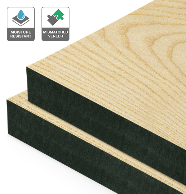 European Ash Veneer Mismatched on Black Moisture Resistant MDF