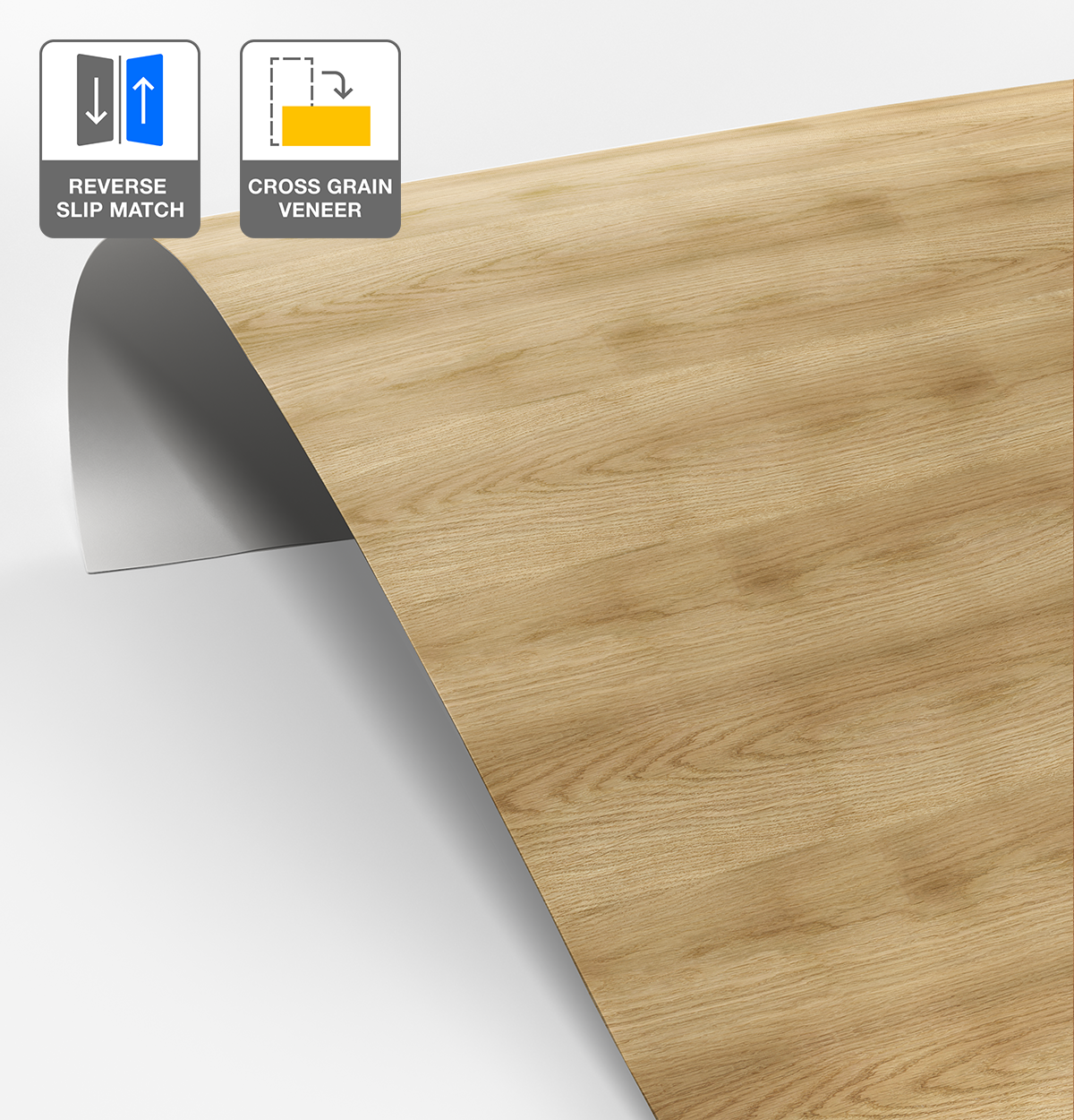 European Oak Veneer Crown Cut Reverse Slip Match Cross Grain on Laminate