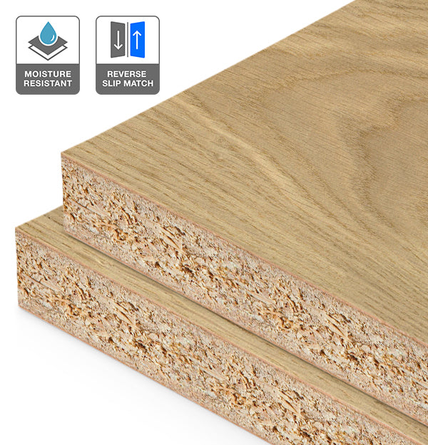 European Oak Veneer Crown Cut Reverse Slip Match on HMR Moisture Resistant Particleboard