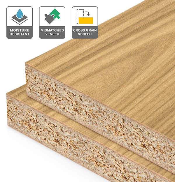 Plantation Oak Veneer Mismatched Cross Grain on HMR Moisture Resistant Particleboard