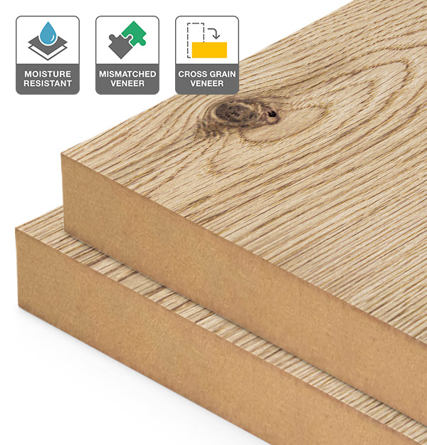 Rustic Oak Veneer Mismatched Cross Grain on Moisture Resistant MDF