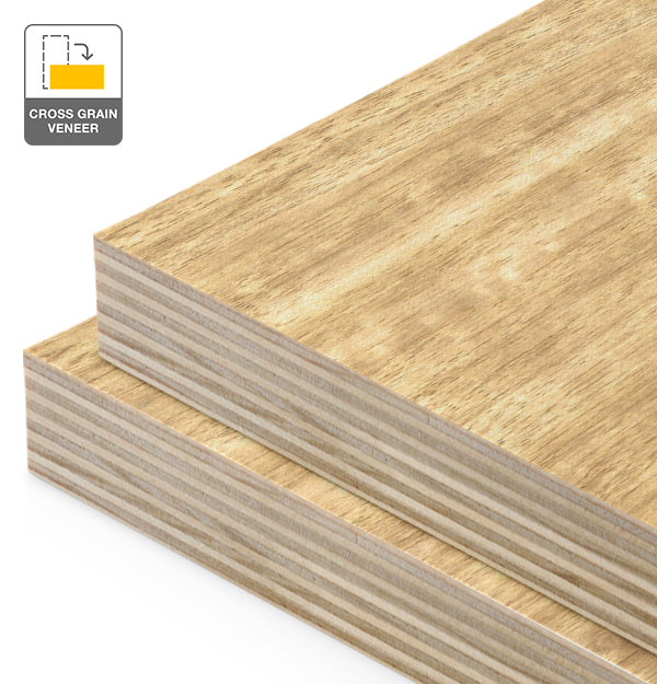 Grain Orientation: Cross Grain - Veneer is applied with the grain running horizontally across the width of the sheet. This configuration is ideal for drawer fronts, overhead cabinetry, and short-span applications.