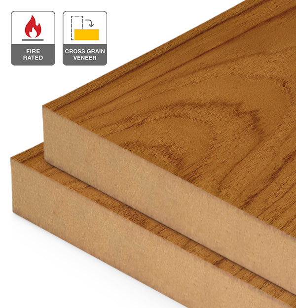 Teak Veneer Crown Cut Cross Grain on Fire Rated MDF
